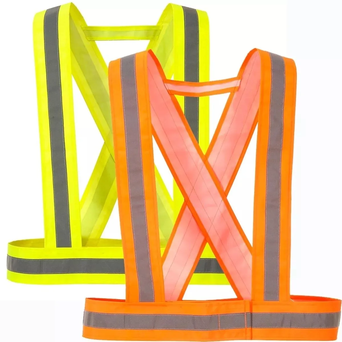 Bretelle ad alta visibilita Gialle o Arancioni regolabili. Facile da indossare e da togliere. Banda riflettente da 3 cm per migliorare la visibilità.