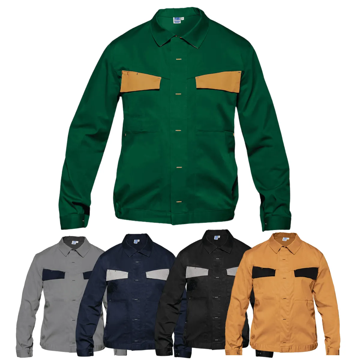 Realizzato in tessuto misto 64% poliestere, 34% cotone e 2% elastan con grammatura 245 g/m², offre un’eccellente combinazione tra resistenza, elasticità e traspirabilità.