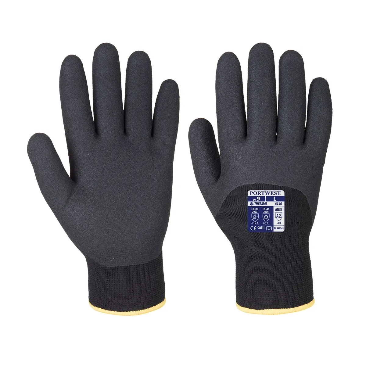 Ultimo sviluppo nella protezione delle mani. Doppia fodera intrappolata singolarmente con copertura in immersione a 3/4 per mantenere le mani all'asciutto. Una soffice schiuma ad immersione di nitrile per una protezione completa delle dita. Dorso aperto per la traspirabilità.