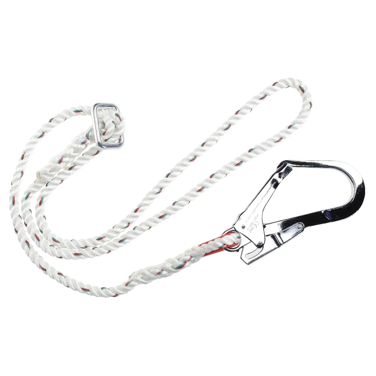 Cordino di posizionamento in poliestere regolabile ideale per ritenuta sul lavoro. È lungo 200 cm compreso i connettori. Certificato CE