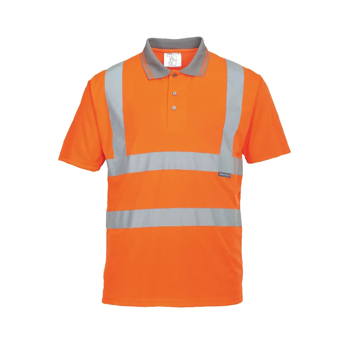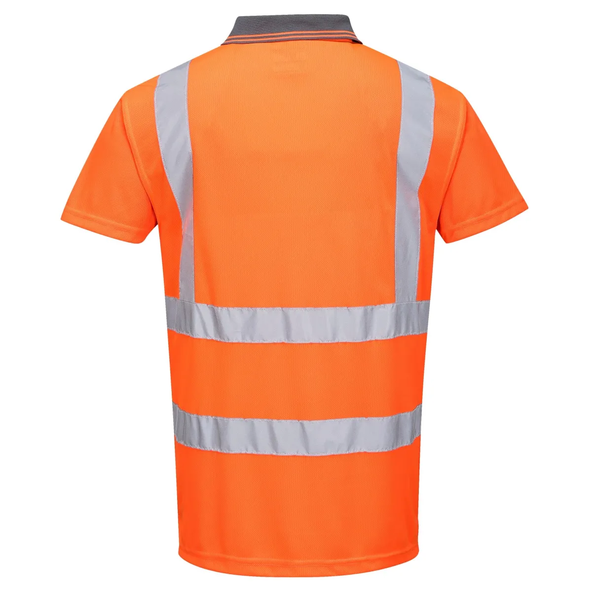 Polo in tessuto traspirante, colletto in contrasto e bande rifrangenti. Resistente e duratura adatta per lavori estivi nel settore ferroviario.