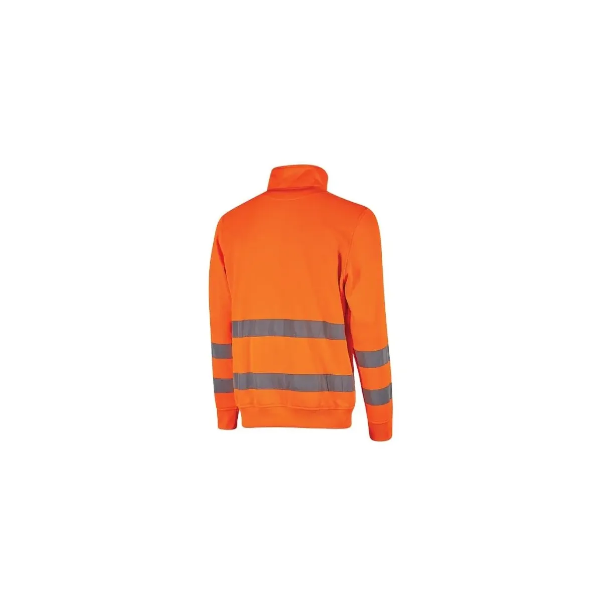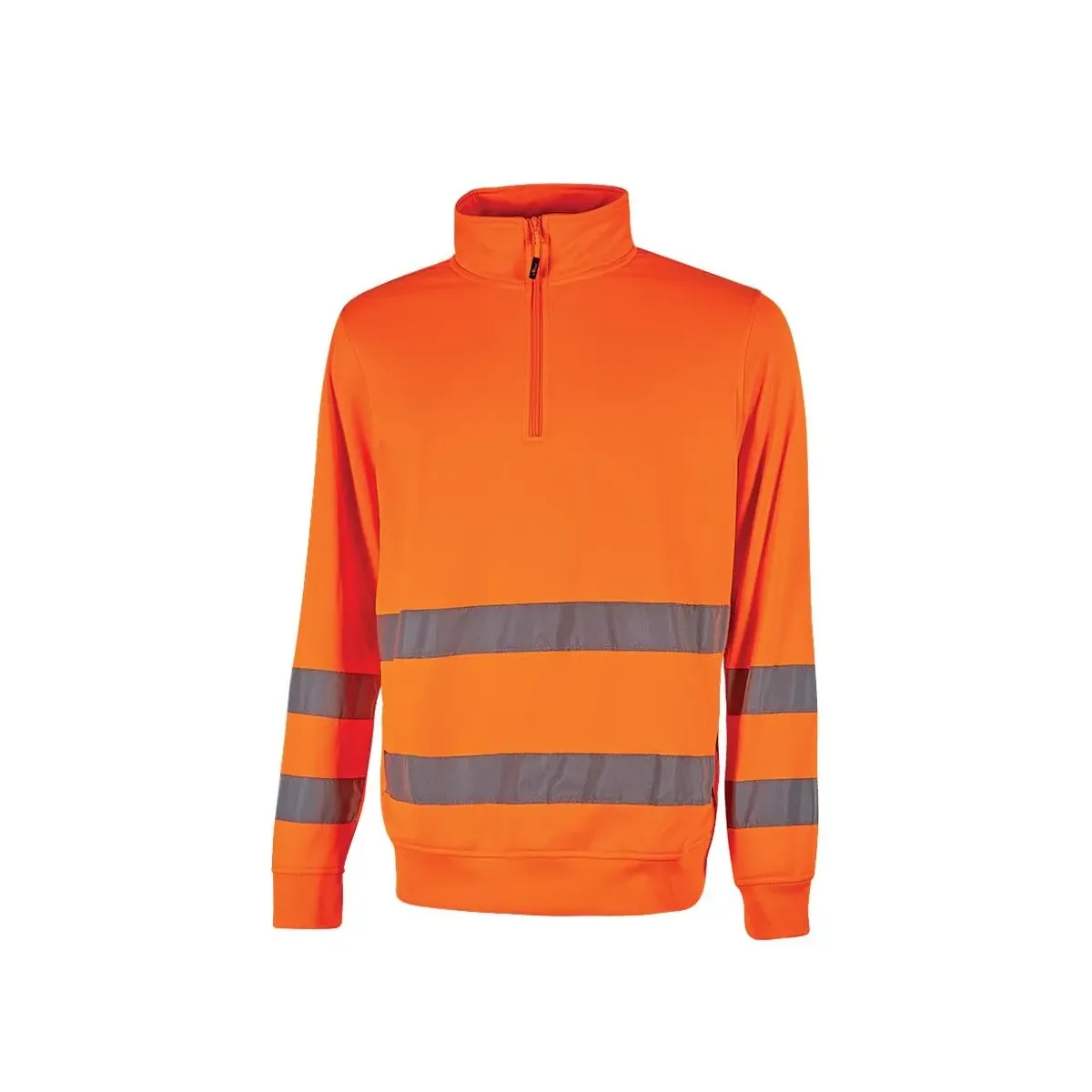 Felpa da lavoro U-Power Felis in poliestere garzato con bande riflettenti, mezza zip e polsini elasticizzati. Conforme EN ISO 13688 e EN ISO 20471. Comfort e visibilità fino a 25 lavaggi.