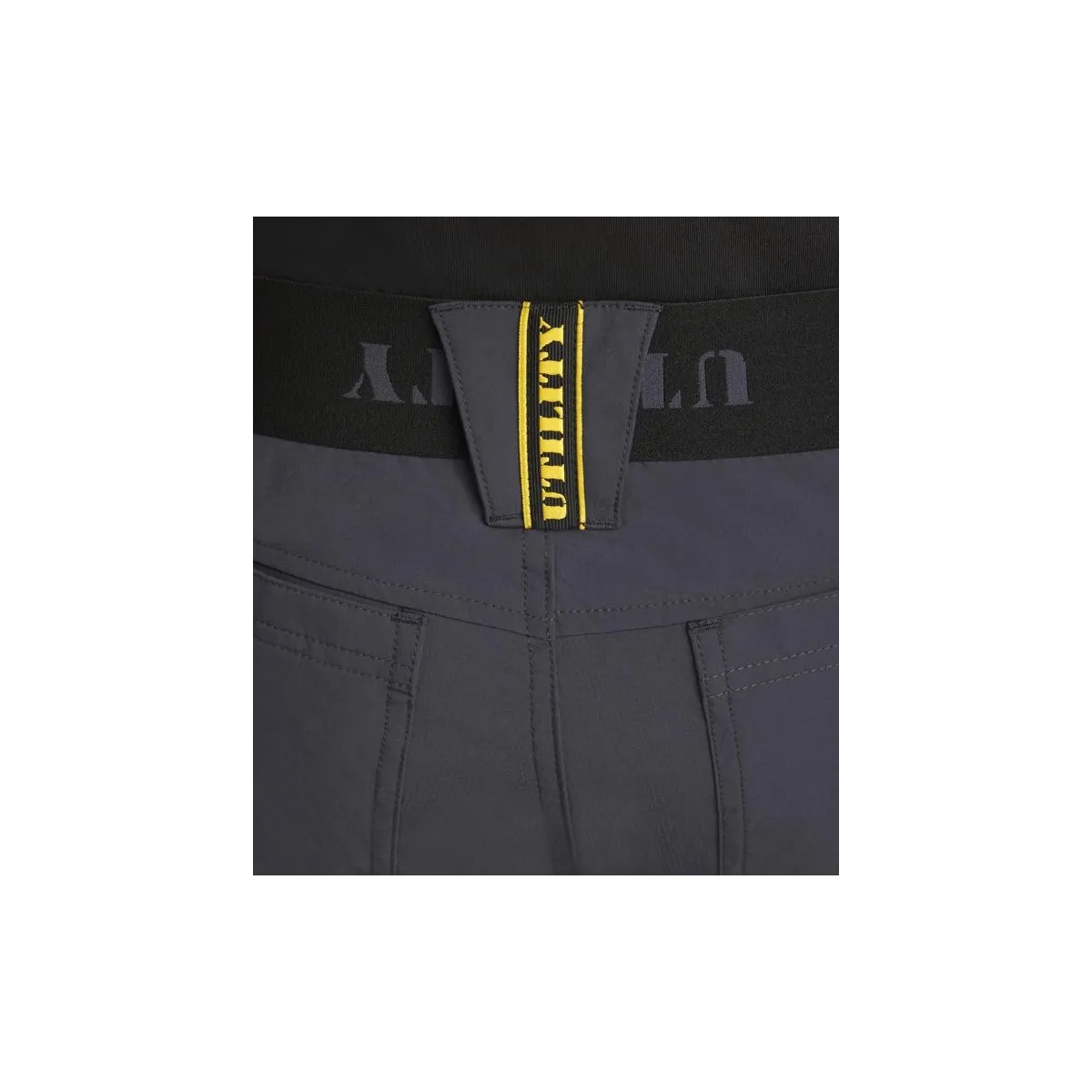 Bermuda da lavoro in nylon stretch con vita elasticizzata, tasche cargo multifunzione, dettagli fluo e trattamento Wicking 3M™ Scotchgard™ per asciugatura rapida. Comfort e mobilità ottimali.