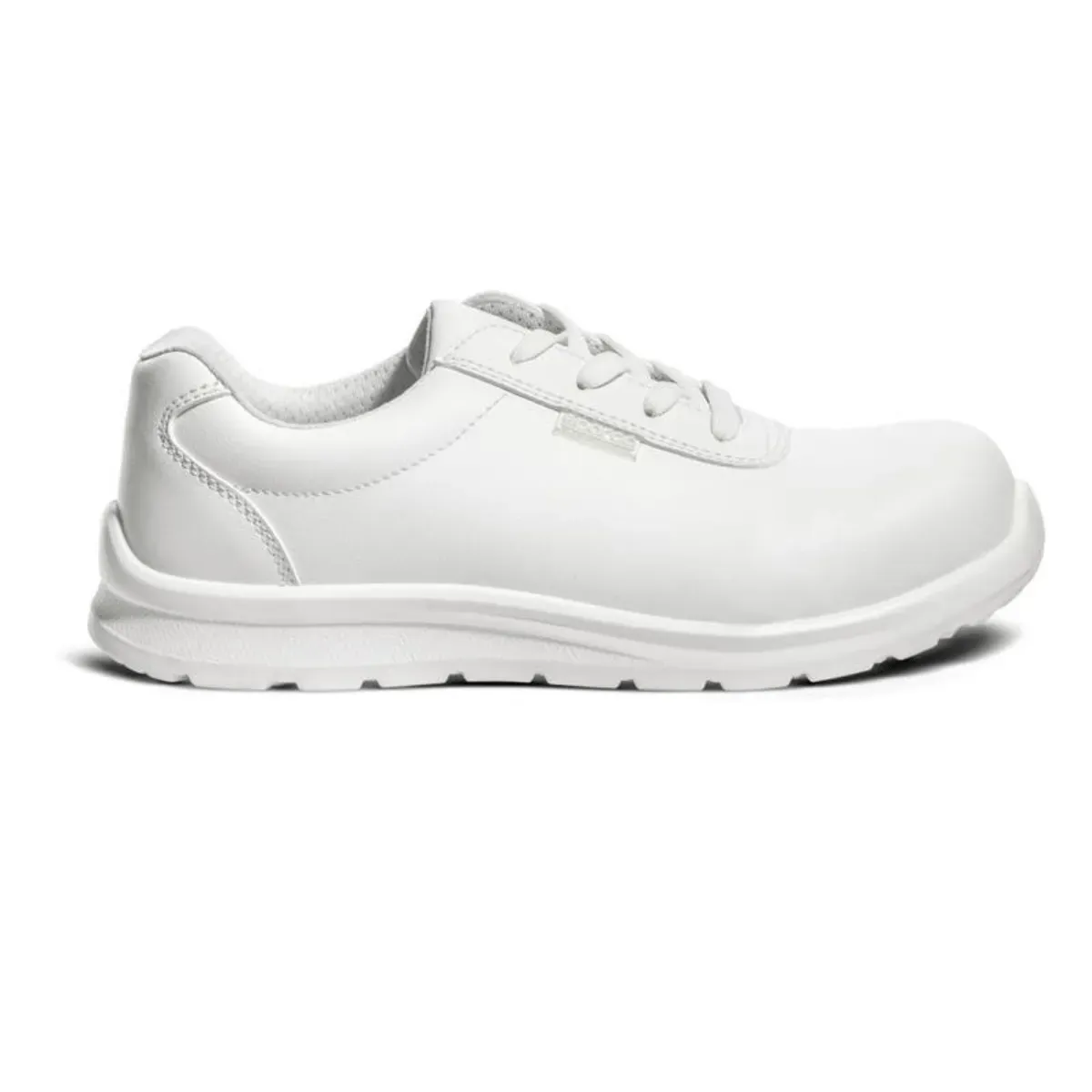 La tomaia è realizzata in microfibra liscia anti UV di alta qualità, resistente alla penetrazione dell’acqua e facile da pulire, perfetta per ambienti che richiedono elevati standard igienici.