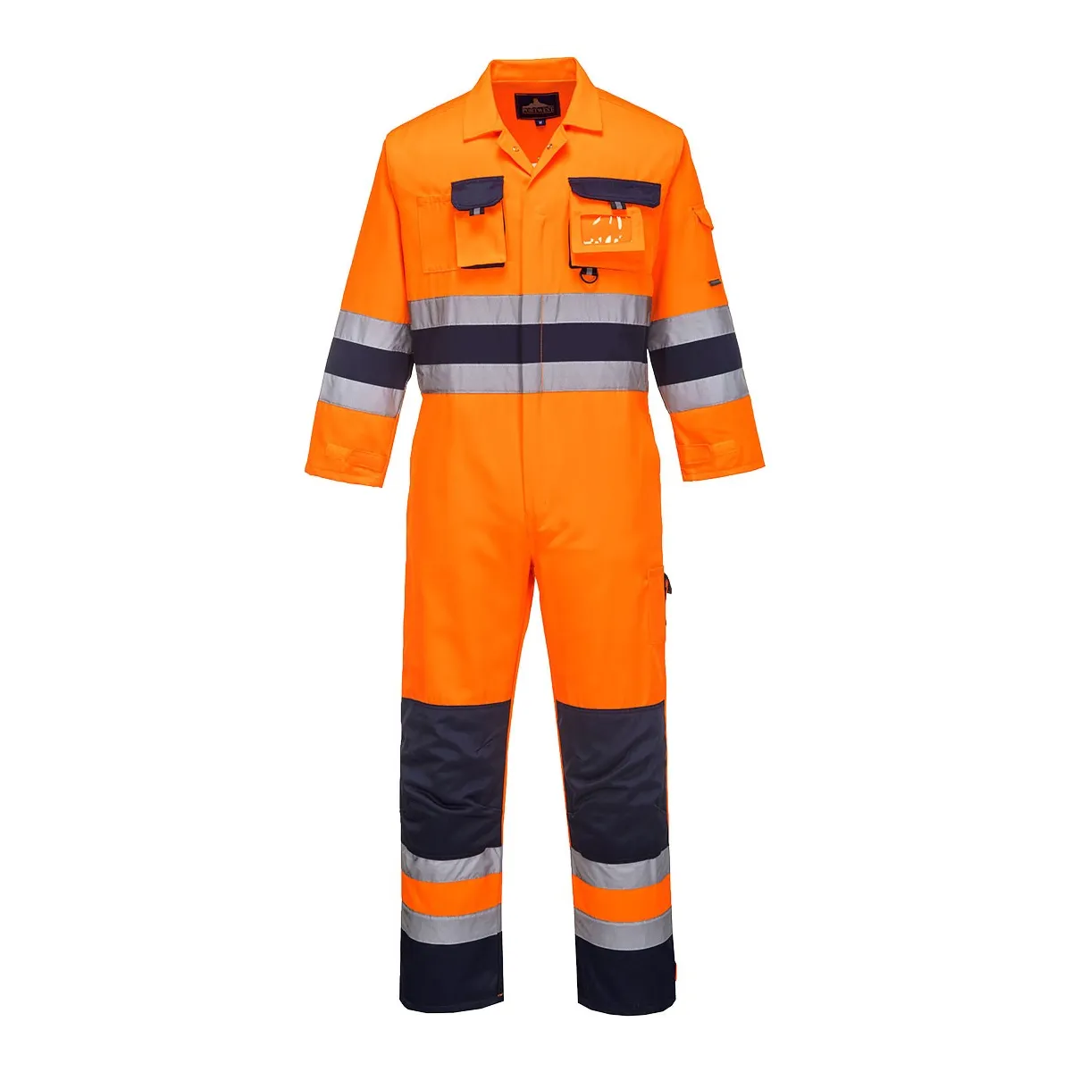 Tuta in poliestere e cotone con porta ginocchiere ergonomiche ed un elastico in vita posteriore per facilitare il movimento, polsini regolabili con velcro, tasche multiple, orli regolabili con velcro.